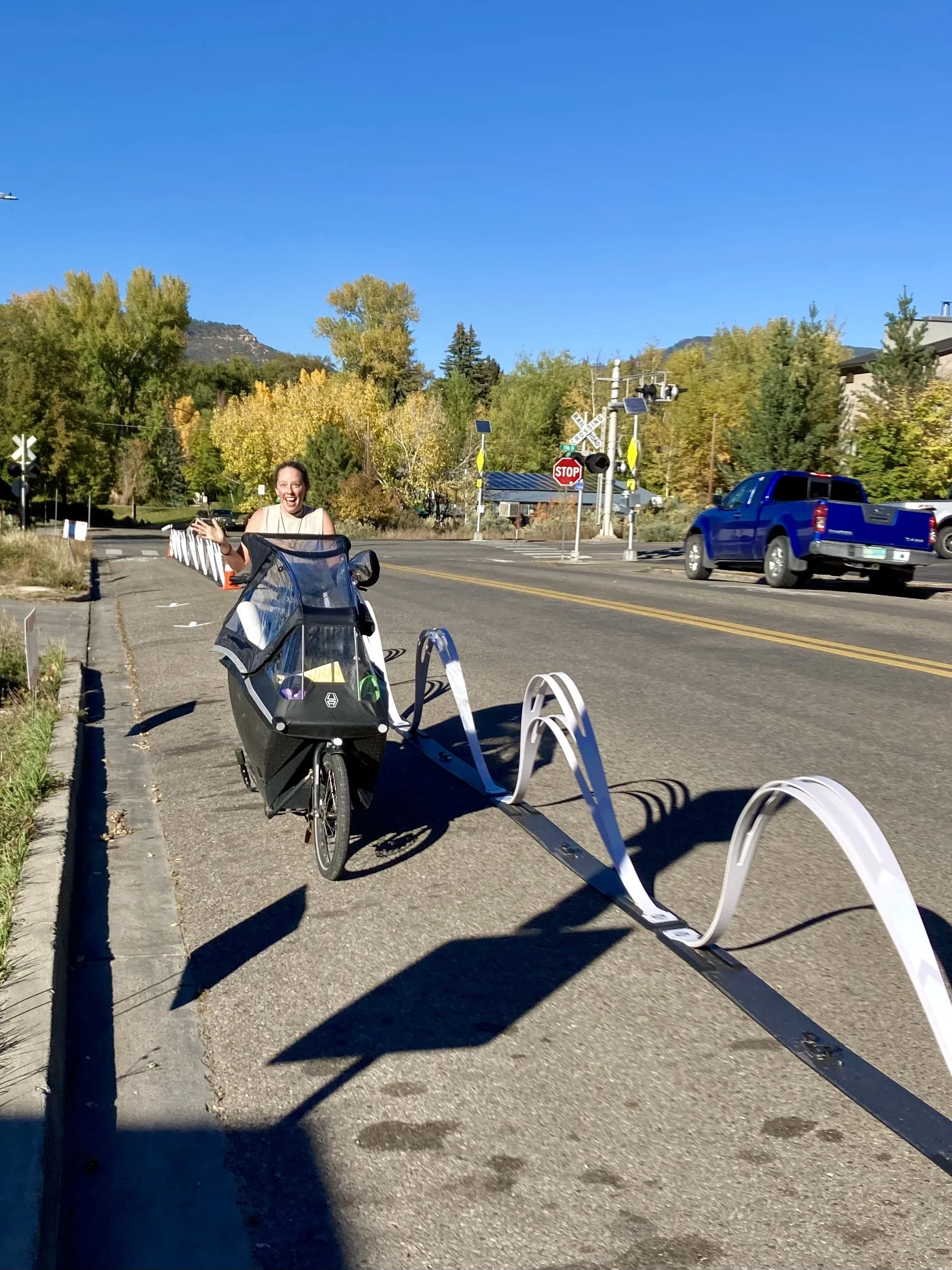 In 2023, Bike Durango received a grant from People for Bikes to install a “pop-up” bike lane to demonstrate what a protected, delineated bike lane would look and feel like in our town.